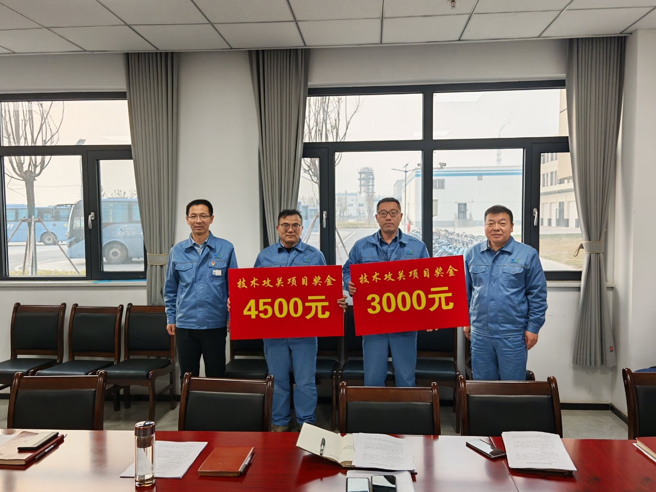 為表彰先進、樹立榜樣,進一步激發全體員工創新創效的積極性與主動性,12月19日下午,公司對在自主攻關優化項目中取得突出成績的孔祥昶項目團隊和李征徐項目團隊進行表彰。公司黨委書記、董事長姜自成,公司總經理、黨委副書記、副董事長延立強為其頒發了技術攻關項目獎金。