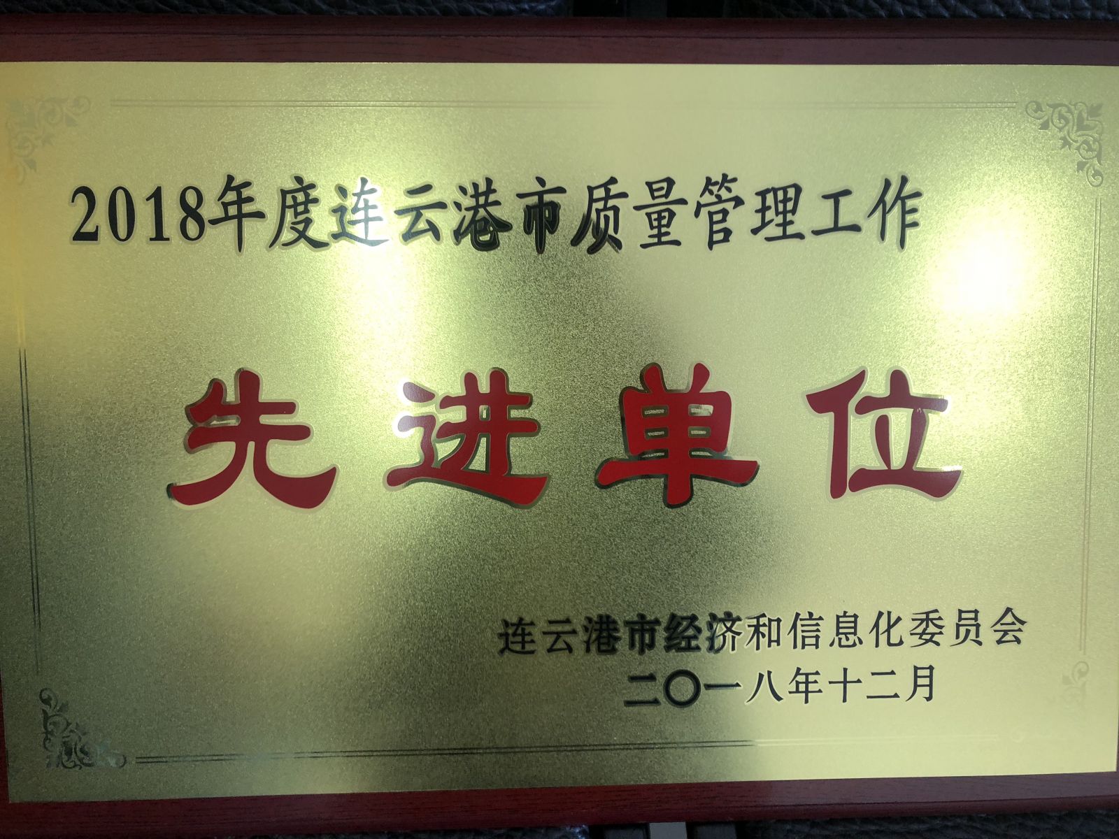 公司榮獲市質量管理先進單位