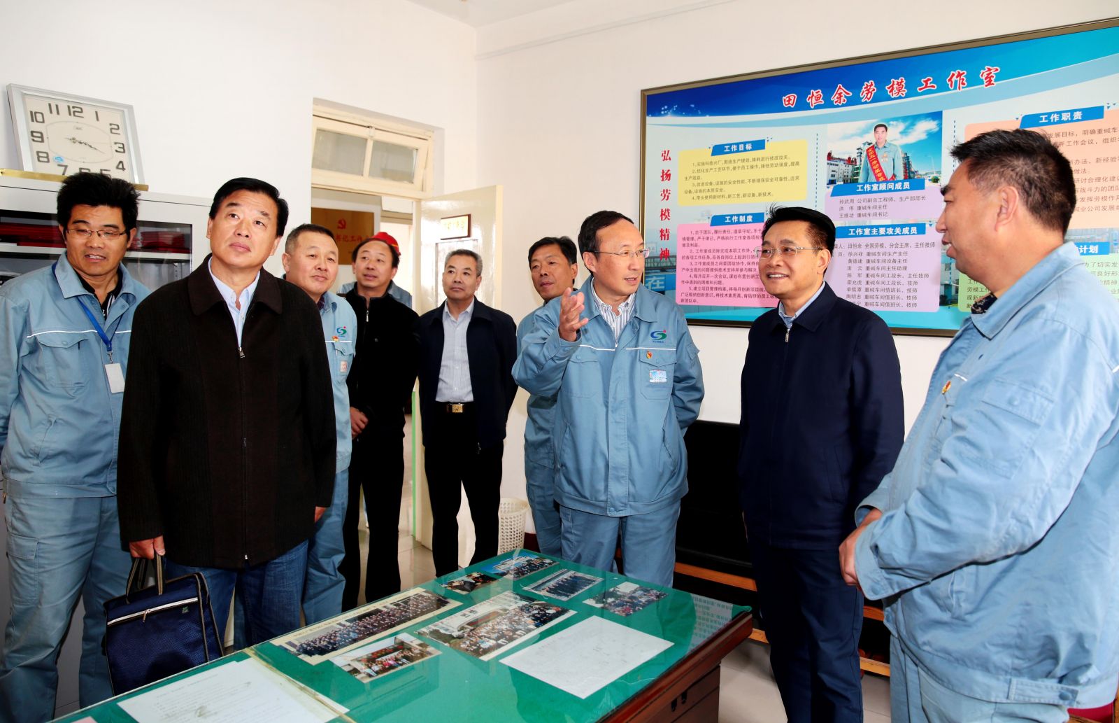 在田恒余勞模工作室,王家全詳細詢問公司勞模情況,當他得知田恒余的“黃泥堵漏法”、“七字操作法”等小發(fā)明、小創(chuàng)造給公司帶來的豐厚經(jīng)濟效益時,他指出,自己優(yōu)秀更要繼續(xù)發(fā)揚好勞模帶頭引領作用,勞模工作室的關鍵在創(chuàng)新,利用好這平臺,將勞模精神和技能傳承下去,為公司持續(xù)發(fā)展提供人才保障。