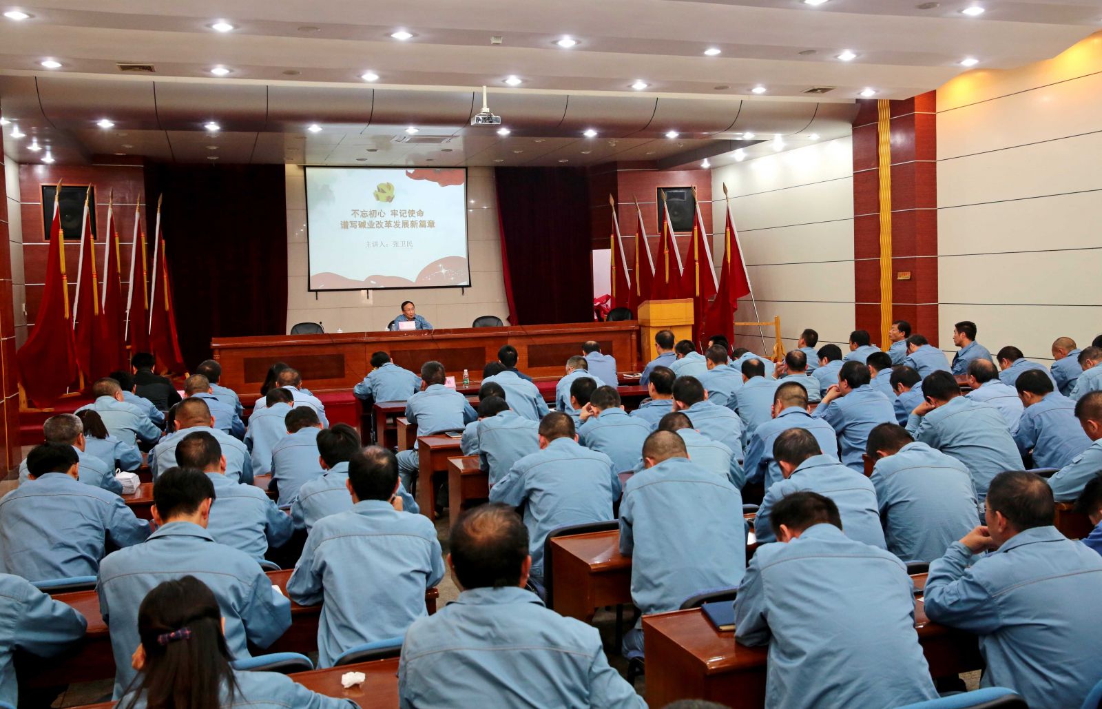 專題黨課上,公司黨委書記、董事長張衛民以“不忘初心、牢記使命,譜寫堿業改革發展新篇章”為主題,從“守初心、擔使命,要深刻學習領會習近平新時代中國特色社會主義思想內涵”、“守初心 擔使命 要充分認識到公司與習近平總書記對國資國企工作要求的差距”、“守初心、擔使命,要善于運用新思想指導實踐推動工作”、“守初心、擔使命,需要全體黨員干部敢于斗爭敢于擔責”等四個方面,結合工作經歷、學習體會、調研情況,為參會人員上了一堂精彩、生動、嚴肅的專題黨課和形勢任務教育課。他要求全體黨員干部要用習近平新時代中國特色社會主義武裝頭腦,在本職崗位上勇于擔當、履職盡責,面對困難迎難而上,面對矛盾敢于碰硬,面對不良現象敢于亮劍,切實擔負起推進公司做大做強做優的職責任命,共同譜寫公司高質發展的新篇章。