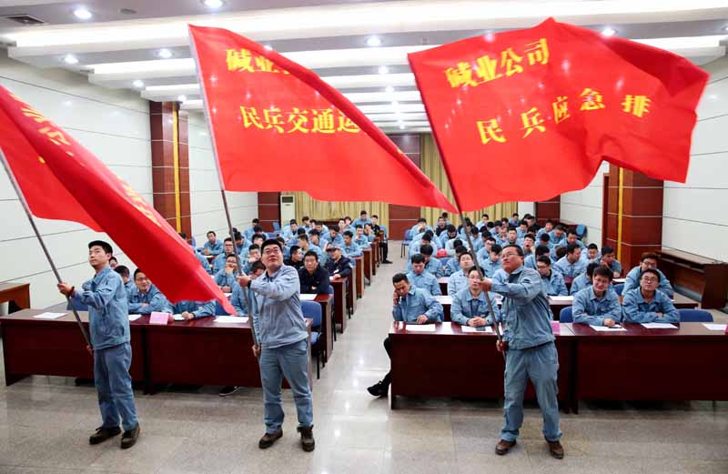 呼點人員后,公司民兵應急排、交通運輸分隊、防化救援分隊等3支分隊的100多名基干民兵進行了莊嚴宣誓,基干民兵代表作了表態發言。民兵們個個著裝整齊、精神飽滿、充分展示了基干民兵的良好政治素質和精神風貌。