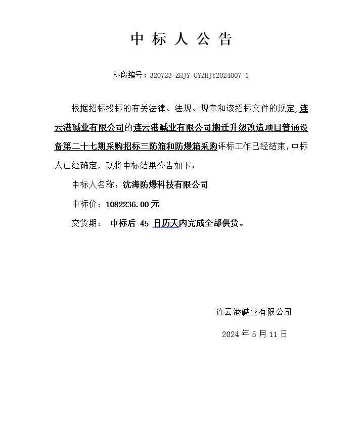 搬遷升級改造項目普通設備第二十七期采購招標三防箱和防爆箱采購中標人公告