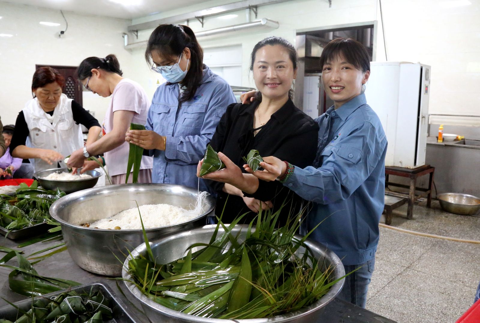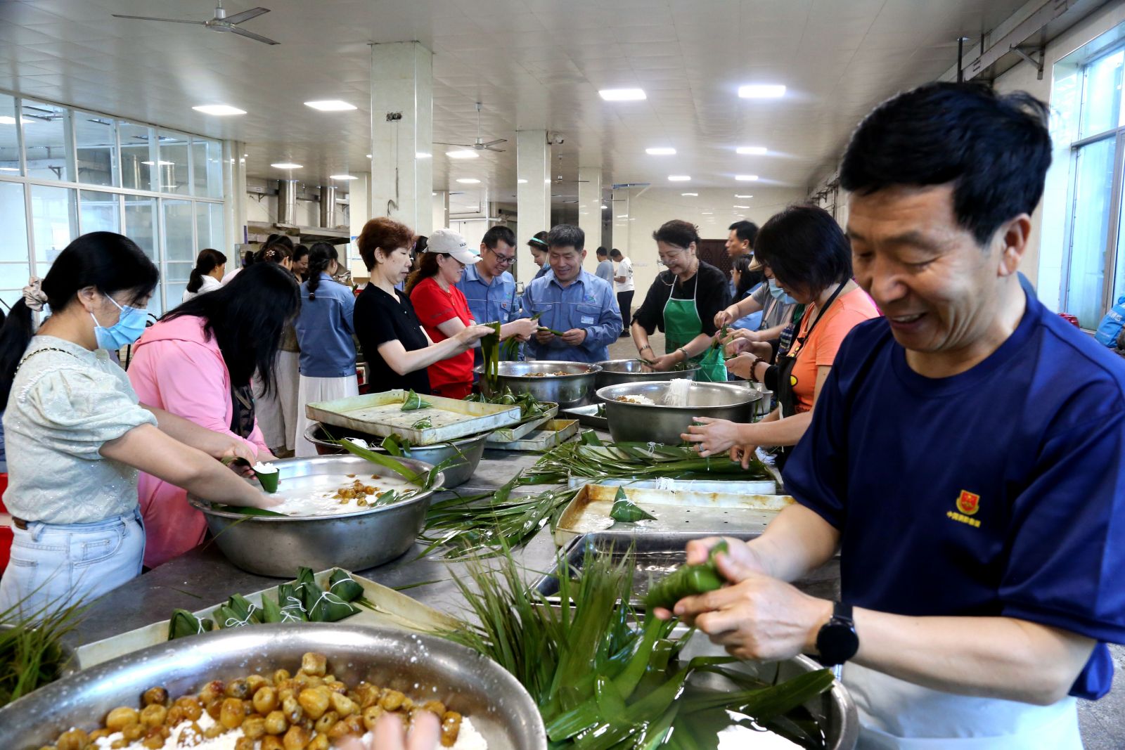 為保證活動順利開展,公司物管中心提前做好食材的采購,并對上萬余片棕葉進行煮熟晾干,300斤糯米進行浸泡,100余斤蜜棗進行清洗晾干。同時,為了保證所有就餐職工每人兩個粽子的供應量,堿業公司工會邀請23名內退職工參與活動。