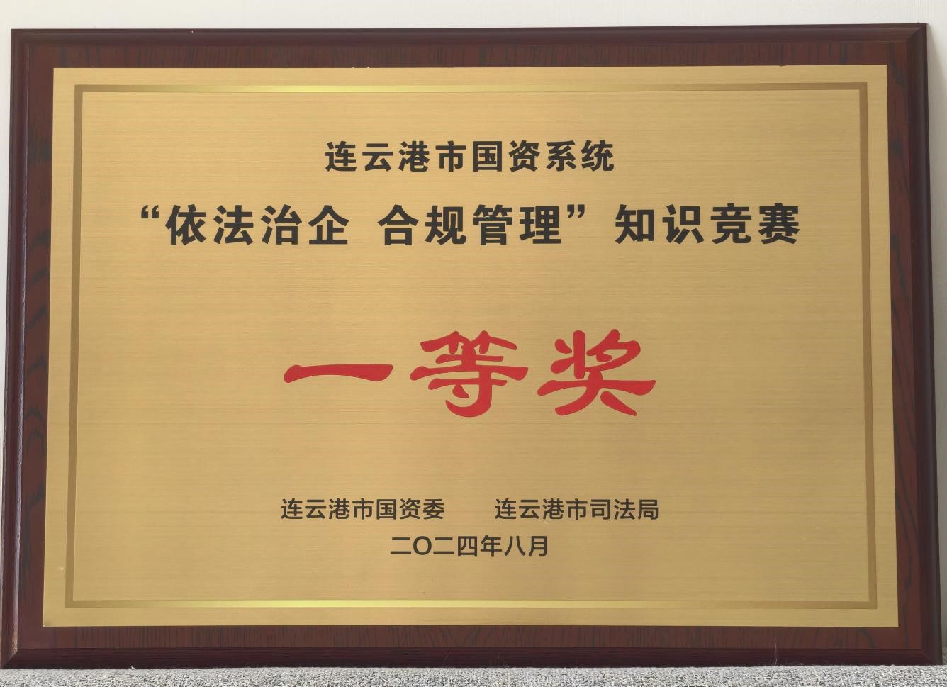 8月27日,由連云港市國資委、市司法局聯合舉辦的全市國資系統“依法治企合規管理”知識競賽決賽在連云港市廣播電視臺成功舉辦。我公司代表隊脫穎而出,榮獲一等獎。