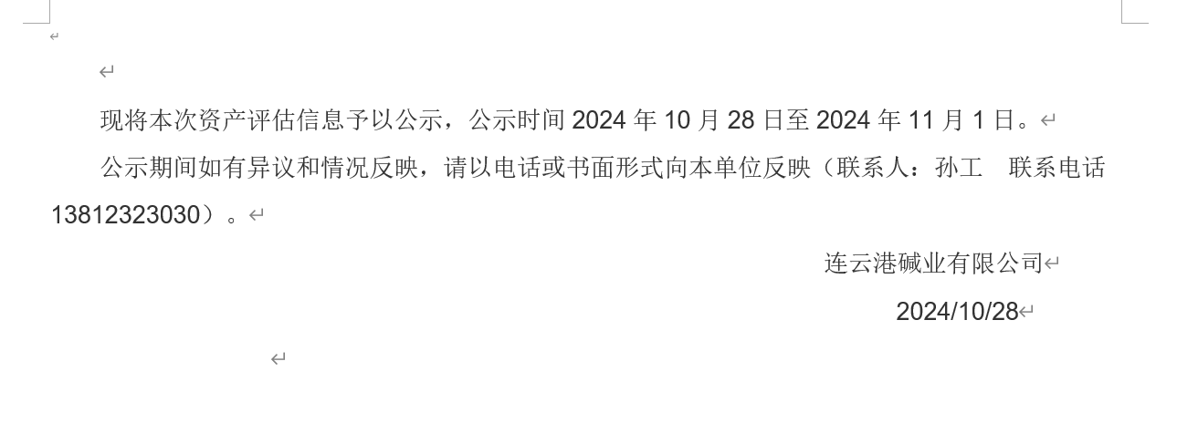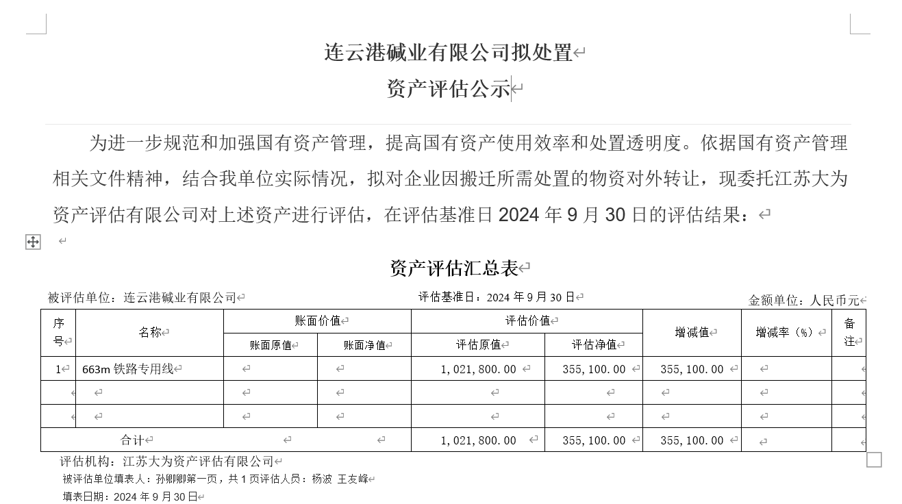 連云港堿業有限公司鐵路專用線資產評估公示